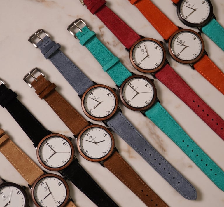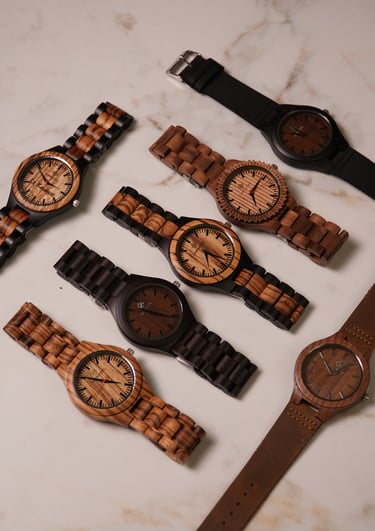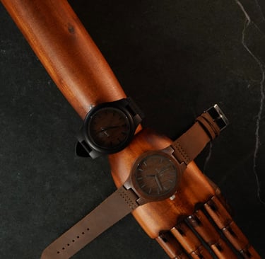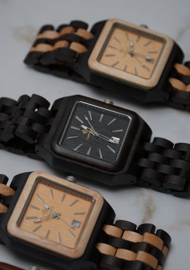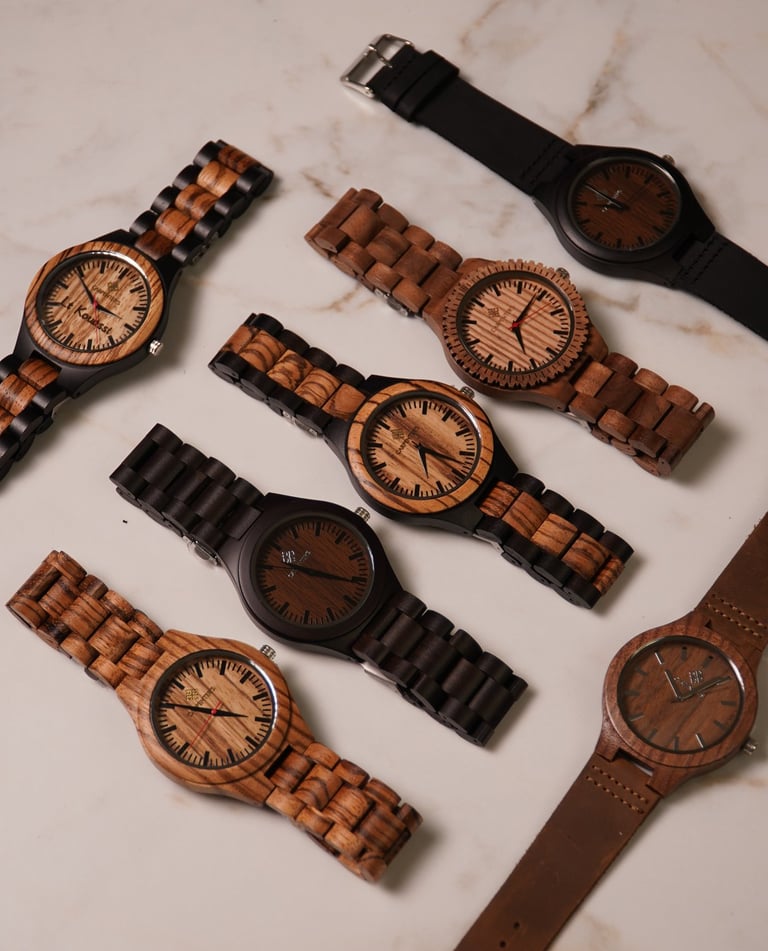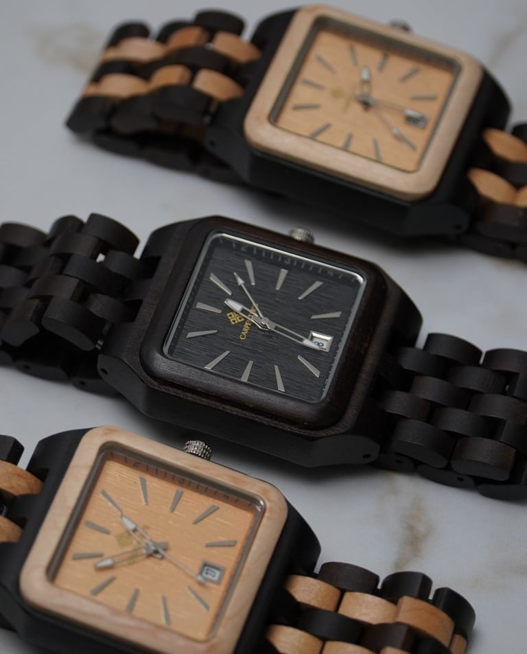 Montres artisanales en bois, alliant luxe et design moderne.